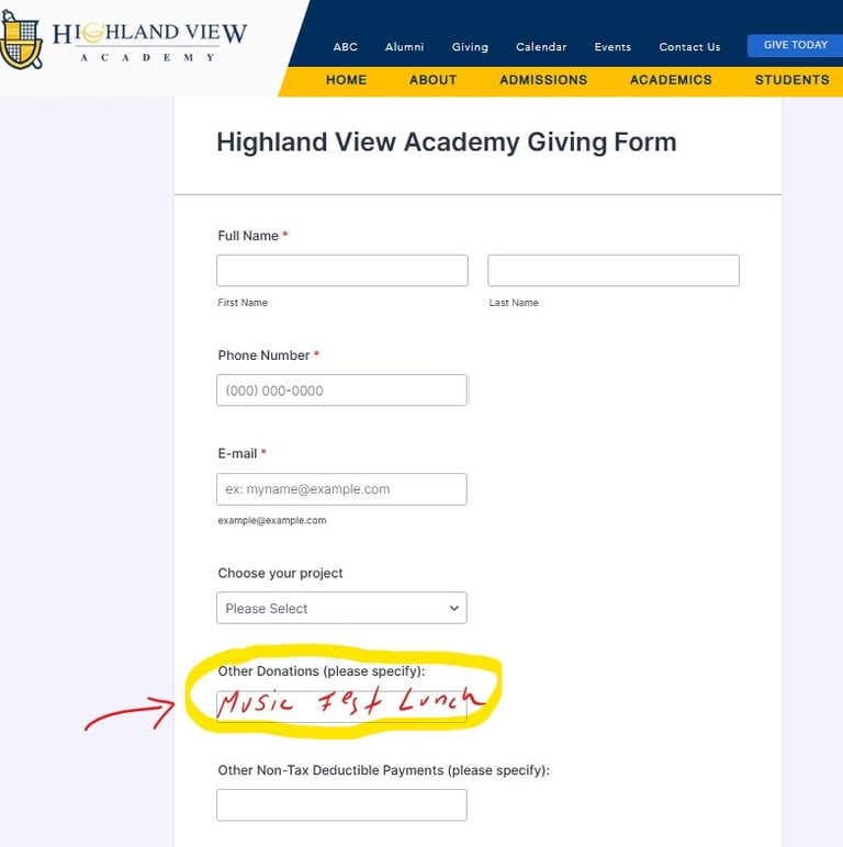 Questions about dormitory accommodations or late registration? You may contact Angela Olin: aolin@highlandviewacademy.com